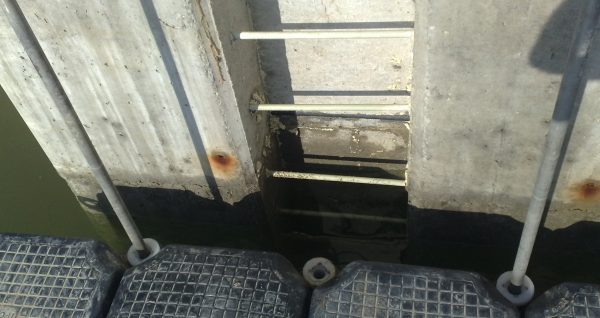 بازو های بولت شده بر روی اسکله بتنی میتواند جایگاه میله های استنلس استیل را محکم کند و همچنین راه پله ی تعبیه شده روی اسکله بتنی دسترسی به اسکله شناور